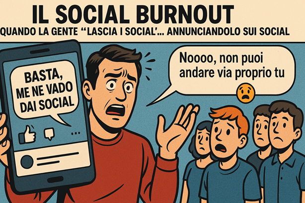 Ci sono certezze nella vita: le tasse, la fila all’INPS, il vicino che taglia l’erba la domenica mattina… e l’utente che, stremato dalla vita online, pubblica il suo epico “Basta, me ne vado dai social”. Ovviamente… sui social. Siamo davanti a uno dei più raffinati paradossi dell’era digitale: dichiarare la propria fuga dalla gabbia proprio dalla gabbia. Una sorta di addio al nubilato celebrato direttamente all’altare. La dichiarazione drammatica La scena è sempre la stessa: un post lungo quanto il...