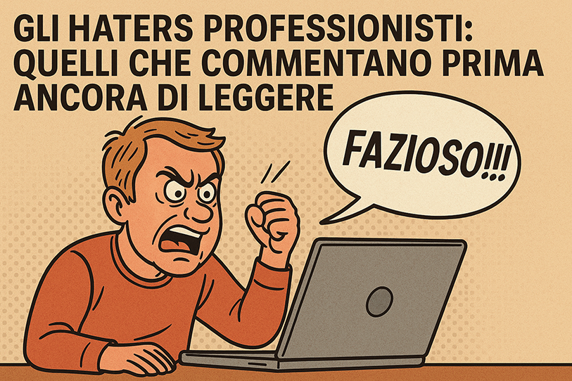 “L’importante è indignarsi, non capire” Se esistesse un campionato mondiale dell’indignazione istantanea, l’Italia porterebbe a casa medaglie d’oro, d’argento e pure quelle di latta.Il fenomeno ormai è chiaro: c’è una categoria di utenti, gli haters professionisti, che possiede una straordinaria abilità naturale, quasi da superpotere.No, non leggono velocissimo.No, non capiscono meglio degli altri.Semplicemente commentano prima ancora di aprire il post. Una specie evoluta di critico digitale, metà lettore, metà sfera di cristallo, capace di emettere giudizi granitici basandosi esclusivamente su:...