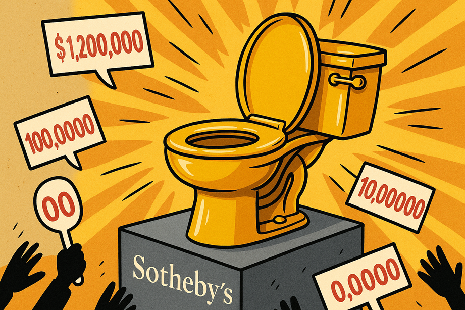 Dieci milioni di dollari.Per un water.No, non è la nuova tassa del governo, è semplicemente arte contemporanea.Il celebre gabinetto d’oro di Maurizio Cattelan, rubato nel 2018 (forse da qualcuno con problemi di liquidità), torna sul mercato grazie a Sotheby’s, che lo mette all’asta a Londra con una base da capogiro.Un’asta che farà storia, ma soprattutto… farà “sciacquone”. Un trono per pochi (che la fanno d’oro) Il water, completamente funzionante e realizzato in 100 chili di oro massiccio a 18 carati,...